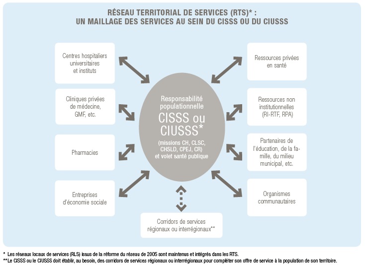 Le schéma du réseau de la santé et des services sociaux (RSSS) procure une vue d’ensemble de l’organisation des soins au Québec. Toutefois, il importe de préciser que ce ne sont pas tous les organismes qui y figurent qui sont des assurés aux protections d’assurance de la DARSSS. Les pages de cette section dressent un portrait plus approfondi des différentes catégories d’établissements publics du RSSS qui sont couverts par les protections que gère la DARSSS.
